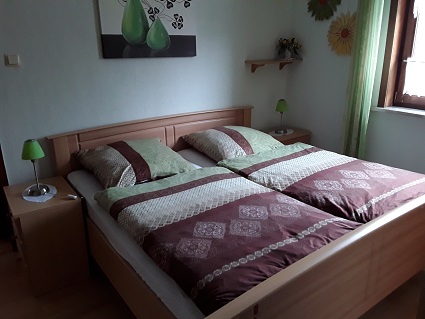 - Einem Schlafzimmer mit Doppelbett